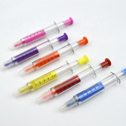 ปากกาไฮไลท์สองหัว,ปากกาหัวพลาสติกความแปลกใหม่ในการฉีดเข็มฉีดยาที่สร้างสรรค์