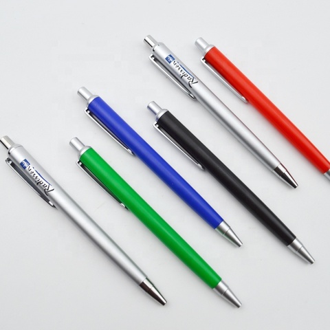 ราคาโรงงานโลโก้ที่กำหนดเองโลหะพลาสติกคลิปโรงเรียน1.0มิลลิเมตรจุดของขวัญส่งเสริมการขายธุรกิจบอลเติมปากกาลูกลื่น